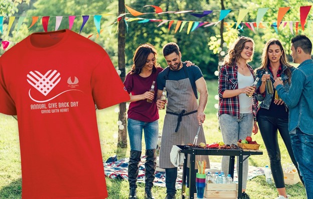 As part of a newly developed corporate social responsibility initiative, an insurance company instituted an annual “give back” day where employee groups volunteered in their communities. The company provided each participant with a Champion® Jersey Short Sleeve Tee in their corporate color and imprinted with the program logo and tagline to wear during their day of giving